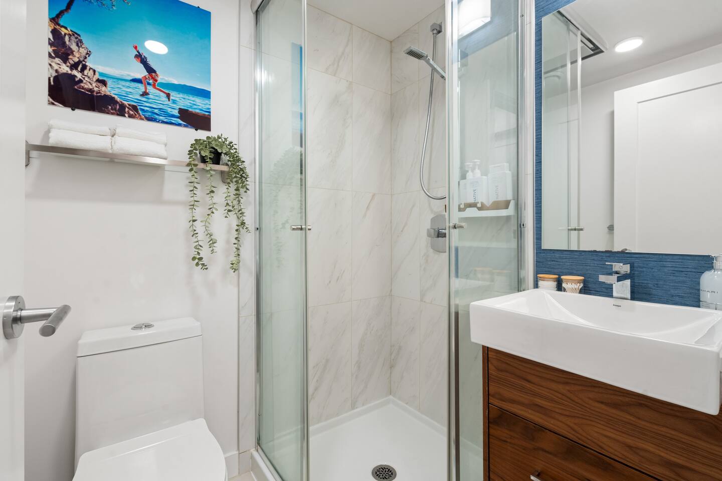 ❤️ Welcome to our chic garden-level studio suite in North Vancouver! ❤️ This thoughtfully designed garden-level suite offers a private outdoor space, nestled a few steps down from the street. Inside, you’ll find a well-appointed main living area featuring a comfortable queen-size bed, a 50-inch Smart TV, and a dining table that seats two comfortably, creating the perfect space to relax or work. The fully equipped kitchen includes a full-size fridge, dishwasher, stovetop, and microwave, along with a complimentary Nespresso machine with pods for your morning coffee. An in-suite ductless washer/dryer is provided for your convenience, ensuring a hassle-free stay. For added privacy, the bathroom is located a few steps up from the main living space, offering a peaceful and comfortable retreat. Suite Highlights/ Notable Amenities: 🛏️ Comfortable Queen Bed: A high-quality mattress, soft linens, pillows, and blackout blinds for restful sleep. 🍽️ Fully Stocked High-End Kitchen – Includes a dishwasher, pots, pans, sharp knives and other kitchen gadgets to make meal prep easy. ☕️Nespresso, French Press, Kettle– and tea pot - starter set of pods and tea bags are provided at the beginning of your stay. 🛋️ Cozy Living Space: 50” Smart TV – Equipped with all major streaming apps (paid accounts not provided). 🌐 High-Speed WiFi – Stay connected with fast and reliable Fibre Optic internet. 🧺 In-Suite Laundry: Enjoy the convenience of a ductless washer-dryer. Comes with detergent and dryer sheets. 🚿 Private Bathroom: Bathroom Essentials – Stocked with quality natural shampoo, conditioner, body wash, and a blow dryer for your convenience. 🌳 Private Outdoor Space: Patio with BBQ – Enjoy outdoor dining and relaxation. 🅿️ Parking Options – 3 visitor parking spots available (first come, first serve), plus free street parking nearby. 🌎 Why Stay Here? This North Vancouver studio rental is ideally located for exploring both downtown Vancouver and the North Shore mountains. Neighborhood Features: 💎Proximity to Nature: Explore nearby trails and parks, perfect for hiking and outdoor activities. 💎Diverse Dining Options: Discover a variety of restaurants and cafes within walking distance. 💎Shopping & Entertainment: Enjoy local shops and easy access to public transit for exploring Vancouver’s attractions. 💎 “Little Tehran” Community: Experience the vibrant Iranian culture along Lonsdale Avenue, featuring authentic grocery stores, bakeries, and eateries. 🚗 Nearby Attractions (by car): ✅ Lonsdale Quay Market (5-minute drive/20 minute walk): A bustling market with over 80 vendors offering fresh produce, unique crafts, and dining options.  ✅ Capilano Suspension Bridge (15-minute drive): Experience breathtaking views from this historic 140-meter-long suspension bridge, 70 meters above the Capilano River and walk through the tall cedar canopy. ✅Lynn Canyon Suspension Bridge (10-minute drive): the free little sister to Capilano Suspension bridge, frequented by locals and a great starting point to explore the local trails or go for a trail run. ✅Museum of Vancouver (30-minute drive): Explore Vancouver’s rich history and culture through engaging exhibits.  ✅ Stanley Park (15-minute drive): A 405-hectare public park offering scenic views, walking trails, and the famous Seawall. ✅ Granville Island (25-minute drive): A vibrant cultural hub with artisan workshops, markets, and theaters. ✅ Grouse Mountain (20-minute drive): Enjoy year-round activities, including skiing, hiking, and wildlife viewing. And if you’re looking for a challenge, it’s also the staring point of the famous Grouse Grind, nature’s stair-master… a one way, 3km vertical trail that will give you a good sweat! ✅ Science World (20-minute drive): Interactive science exhibits and an OMNIMAX theatre for all ages. ✅ Vancouver Aquarium (20-minute drive): Home to thousands of marine species and engaging exhibits. ✅ English Bay Beach (25-minute drive): A popular beach spot with stunning sunsets and beachfront cafes. ✅ Canada Place (20-minute drive or take the Seabus across): Iconic landmark and cruise ship terminal with panoramic views. ✅ Pacific Centre Mall (20-minute drive): Downtown shopping destination with numerous retailers. ✅ Queen Elizabeth Park (25-minute drive): Beautiful gardens and city views atop Little Mountain. ✅ Vancouver Art Gallery (20-minute drive): Exhibits featuring Canadian and Indigenous art. ✅ Commercial Drive (“The Drive”) (20-minute drive): A culturally diverse neighborhood known for its Italian heritage, offering a variety of eateries and shops.  ✅ Gastown (15-minute drive): Historic district with cobblestone streets, boutiques, and the famous steam clock. ✅ Kitsilano Beach (“Kits Beach”) (30-minute drive): Popular beach with volleyball courts and nearby cafes. ✅ Yaletown (20-minute drive): Chic neighborhood with high-end dining, boutique shopping, and scenic seawall views.  ✅ VanDusen Botanical Garden (26-minute drive): Expansive garden showcasing diverse plant species and themed sections. ✅ Bard on the Beach Shakespeare Festival (25-minute drive): Annual summer event featuring Shakespearean plays in a scenic outdoor setting. 📍 Public transit and the Seabus make it simple to reach downtown Vancouver without a car. ⏱️Note: That these are average driving times; actual times will fluctuate based on traffic. Public transit is easily accessible as an alternative. ⸻ 🐾 Pet Policy: Dogs are welcome, but please reach out for approval before booking. A $50 pet fee applies for extra cleaning.