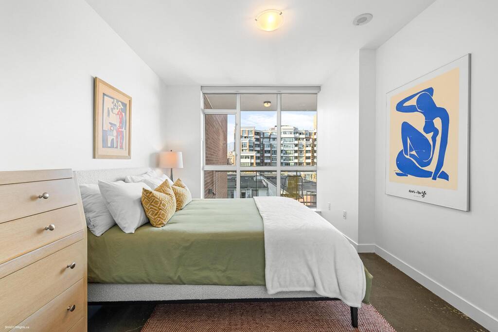 ✨You’ll love being in Strathcona / Chinatown, a neighbourhood alive with culture, food, and convenience. The building sits on a designated bike route, so whether you explore by foot, bike, or transit, you’re in a perfect spot. Rent a Mobi bike just 5 minutes away and live like a local. Inside you’ll find sleek, polished concrete floors and lofty 8′7″ ceilings, creating a loft-style feel. Floor-to-ceiling windows flood the space with light and frame the city & mountain vistas. The kitchen is fully equipped (and then some), with a dining table that seats four. For downtime, enjoy books, a smart TV with Netflix / Amazon Prime / Disney+ / Crave, and even a Nintendo 64 with classic games. Both bedrooms are generous and comfy. Main bedroom has a queen-sized Endy mattress (plus extra foam topper), and the second bedroom has sliding doors for extra privacy. The main bedroom features both blackout and sheer blinds for flexible lighting. The bathroom is your spa equivalent — a separate shower and a deep soaker tub, perfect for unwinding after a day city-hopping. Everything you need for an unforgettable Vancouver stay is here. Amenities • 🅿️ Free & secure underground parking • 🏋️ Gym in the building • ⚡ High-speed WiFi • 🍽️ Fully equipped kitchen • 📺 TV with streaming apps • ☕ Nespresso machine & pods • 💇 Hair dryer • 🧴 Shampoo, conditioner, body wash + extra toiletries • 🔐 FOB-access secure building • 🔥 Weber BBQ + grilling utensils • 🛁 Deep bathtub for relaxing • 🌟 Patio with seating & string lights ⸻ Walk To • Thornton Park — ~0.5 km / ~6 min walk  • Andy Livingstone Park — ~0.6 km / ~6 min walk  • Sun Yat-Sen Gardens — ~0.6 km / ~7 min walk  • Creekside Park — ~0.7 km / ~8 min walk  • False Creek Village shopping — ~1.2 km / ~14 min walk  • CF Pacific Centre (downtown shopping) — ~1.7 km / ~20 min walk  ⸻ 💎Location Highlights This spot is walkable, bikeable, and well connected by transit: • Walk Score: 99 / 100 (Walker’s Paradise)  • Transit score / access to multiple bus lines right near the building  • Biker’s Paradise (Bike Score ~95)  • Along a designated bike route, making cycling downtown or around False Creek a breeze • Mobi bike station ~5 minutes away — ideal for local exploring 🌟Nearby Attractions • Stanley Park & Seawall – 4 km / 10 min drive • Vancouver Aquarium – 4.5 km / 12 min drive • Granville Island Public Market – 2.5 km / 8 min drive • Gastown & Steam Clock – 1.5 km / 5 min drive / 20 min walk • Vancouver Lookout (Harbour Centre) – 1.8 km / 7 min drive • Canada Place / Waterfront – 2 km / 7 min drive • Yaletown – 2.2 km / 8 min drive • Science World – 1 km / 12 min walk • Vancouver Art Gallery – 1.3 km / 15 min walk • Dr. Sun Yat-Sen Classical Chinese Garden – 0.7 km / 10 min walk • Queen Elizabeth Theatre / Orpheum – 1.4 km / 15 min walk • Vancouver Maritime Museum – 3.5 km / 12 min drive • Museum of Vancouver – 3.5 km / 12 min drive • H.R. MacMillan Space Centre – 3.8 km / 12 min drive • VanDusen Botanical Garden – 7 km / 20 min drive • Kitsilano Beach – 5 km / 15 min drive • English Bay Beach – 4.8 km / 15 min drive • Grouse Mountain Skyride – 12 km / 25 min drive • Capilano Suspension Bridge Park – 14 km / 25 min drive • Commercial Drive (cafés & shops) – 3 km / 10 min drive ⸻