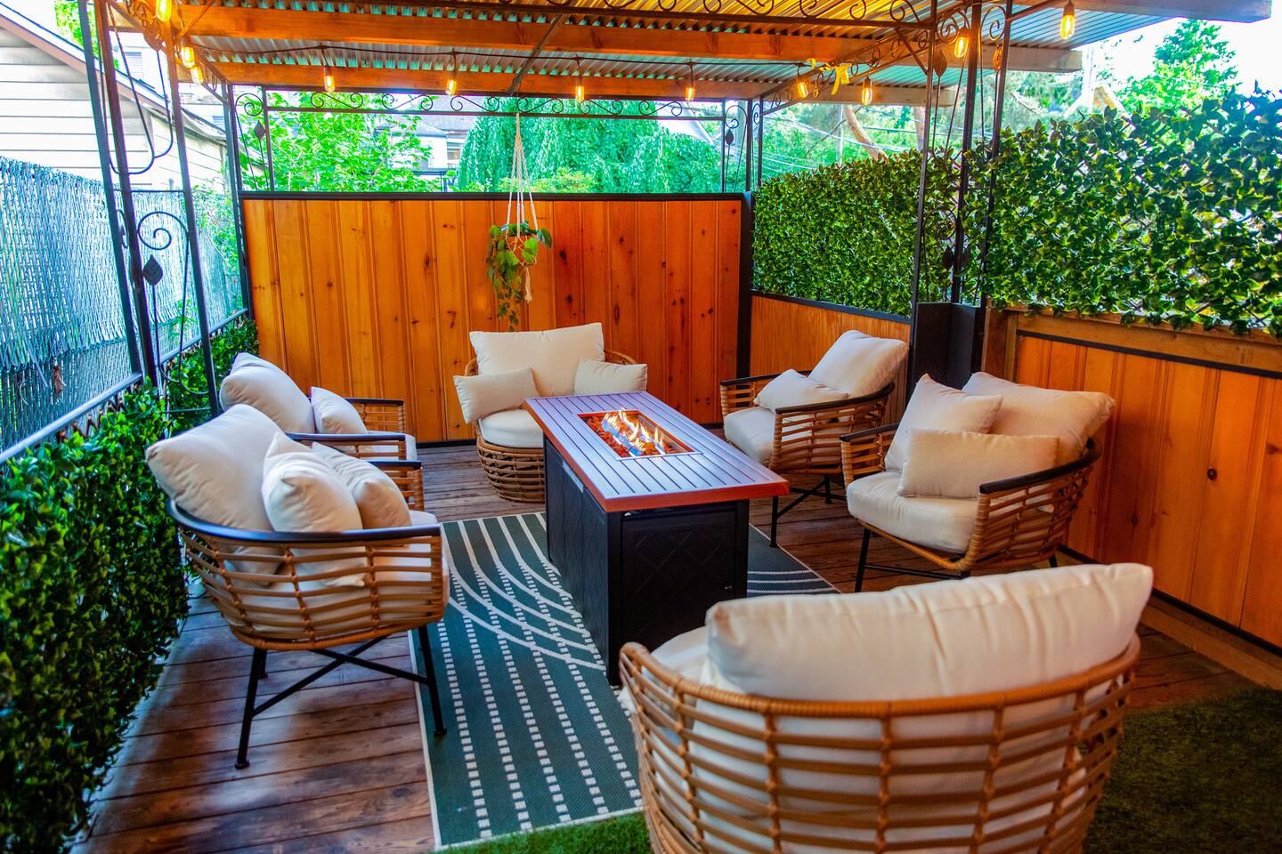 ❤️This Cozy Bohemian Bungalow ❤️provides a unique, peaceful stay for those looking to getaway on weekends or have a quiet place to work remotely during the week. Notable Amenities: -24 hour keyless access with personal key code -Private Patio deck -Fire Table -Free street parking -Washer/Dryer in unit -Fully equipped kitchen -High-Definition Roku TV with Netflix, Hulu, and Disney+ pre-installed -Fully Equipped kitchen -Coffee Bar -Electric fireplace -Bath towels -Shampoo, conditioner and bodywash -Nespresso machine with pods -Fast and Reliable WiFi -Drying rack for clothes -Portable fans -Steamer -Blow dryer -BBQ Grill -BBQ Utensils Walk to: 🚉🍔🌯🍕🍱 -Commercial-Broadway Skytrain Station - 4 minute walk - St. Augustine pub - 2 minute walk -Mr. Greek Donair - 2 minute walk -Loku Japanese Cuisine - 4 minute walk -Uncle Fatih's Pizza - 5 minute walk Close and convenient access to: -Don Oso, authentic latin food - 5 minute Uber -Marcello Ristorante & Pizzeria - 5 minute Uber -Absinthe Bistro - 5 minute Uber -Red Burrito - 10 minute walk -Sal y Limon - 7 minute walk -Bar Corso - 10 minute walk -Best Falafel Commercial drive - 7 minute walk Tourist Attractions: 🚵♂️🚠🌉🎡 -Vancouver Seaplane Tour -Half-Day Whale Watching Adventure -Grouse Mountain & Capilano Suspension Bridge Park -Whistler And Sea to Sky Gondola Tour -Granville Island -Stanley Park -Science world -Gastown Historic -Yaletown Private outdoor deck featuring a BBQ grill, a fire table and a hang-out area to eat or relax under the warm glow Edison bulb string lights. Three Queen size bedrooms with comfortable mattresses, soft linens and pillows. Bedroom 1 located on the main floor of the unit, Bedroom 2 and 3 located upstairs of the unit. Laundry - Washer and dryer are located in the unit with tide pods, bleach, and dryer sheets provided. *Complimentary Nespresso, shampoo, conditioner, and body wash are provided!